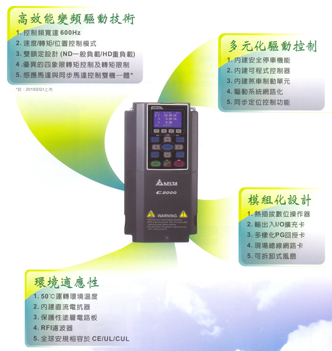 驅動技術領導品牌台達電子整合最佳研發技術,推出極致性價的VFD-C2000系列高階磁場向量控制通用變頻器,高效率高性能運行與低維護長壽命等四大超高CP值,為產業與終端客戶有效節省建構及營運成本,替用戶掌握致勝先機提升競爭力!