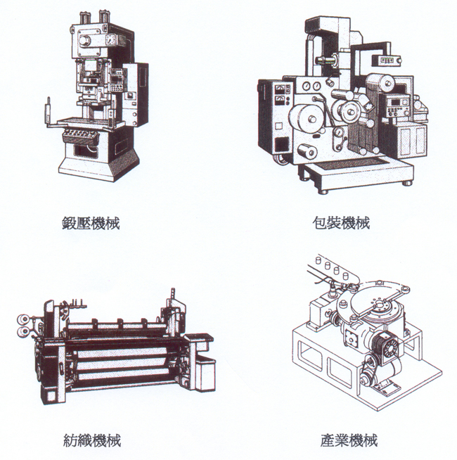 加工機器、充填機、印刷機、插入機、切斷機、熔接機、組立機、計測機、計量機、檢查機、包裝機、輸送機、箱貼機、捲線機‧‧‧‧‧。