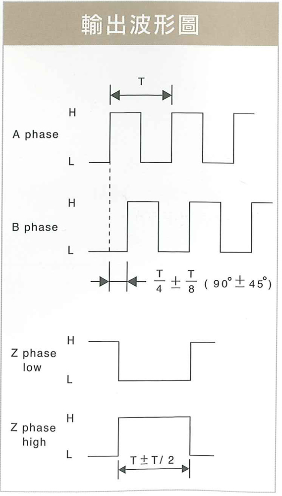 | 輸出相 | 2:A,B 3:A,B,Z(low) 4:A+B+Z(high) |